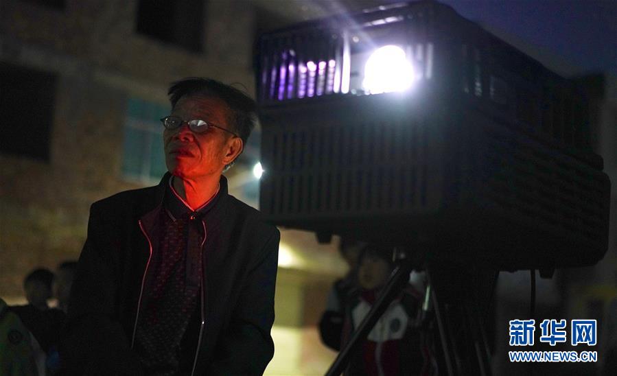 10月30日,曾紀連在寬田鄉(xiāng)山下村為當地百姓放映電影。新華社記者 胡晨歡攝