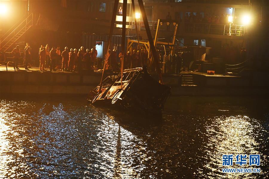 重慶萬(wàn)州墜江公交車(chē)打撈出水
