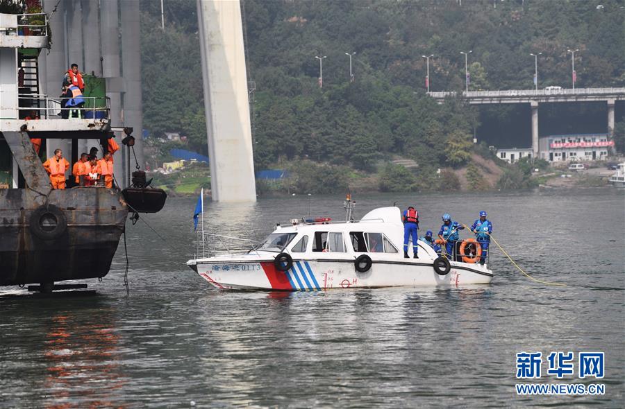 這是10月29日拍攝的重慶萬州公交車墜江事故救援現場。 新華社記者 王全超 攝