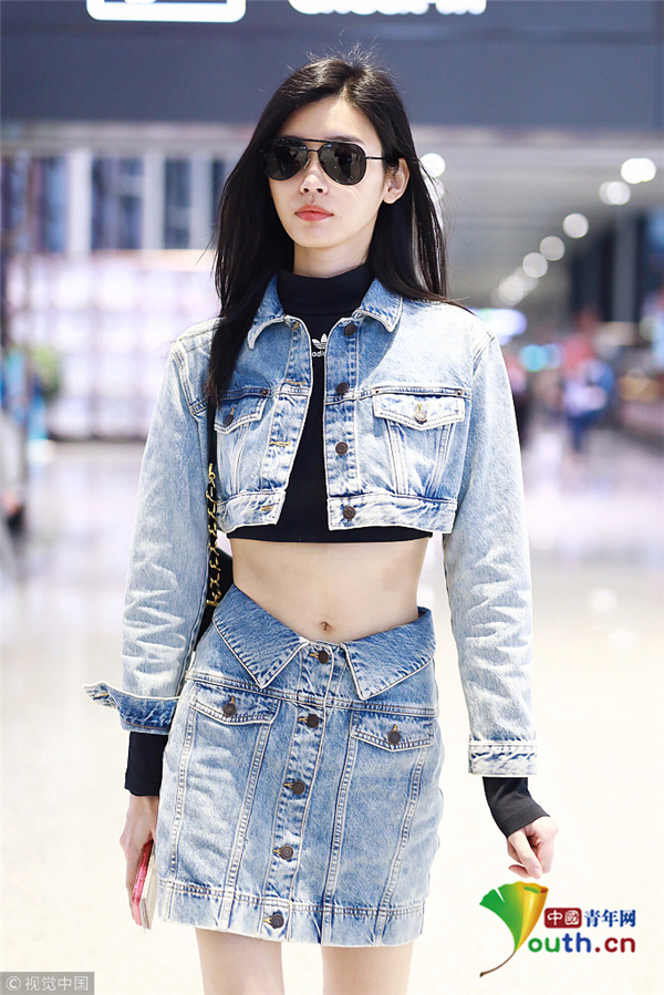 奚夢(mèng)瑤一身帥氣牛仔裝 露細(xì)腰長(zhǎng)腿顯 ...