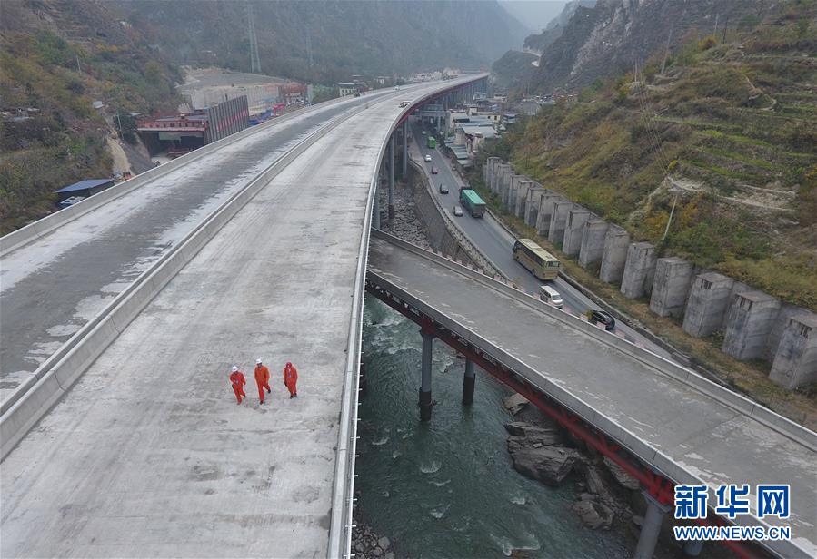 11月3日,工人在克枯大橋合龍現(xiàn)場(chǎng)工作。 當(dāng)日,位于四川省阿壩藏族羌族自治州的汶(川)馬(爾康)高速的控制性工程克枯大橋合龍。 新華社記者 劉坤 攝