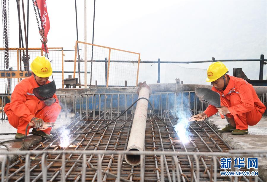 10月23日,在重慶涪陵,施工人員在渝懷鐵路涪秀二線重點(diǎn)工程——烏江右線大橋主跨合龍現(xiàn)場(chǎng)作業(yè)。 當(dāng)日,由中鐵四局承建的渝懷鐵路涪秀二線重點(diǎn)工程——烏江右線大橋主跨成功合龍,標(biāo)志著大橋主體工程全部順利結(jié)束。烏江右線大橋項(xiàng)目全程460.1米,主跨192米,跨越烏江和319國(guó)道。在兩年多的建設(shè)過(guò)程中,施工人員攻克了“不等高墩”“不對(duì)稱邊跨”“邊跨入隧”等多個(gè)技術(shù)難題。 新華社記者王全超攝