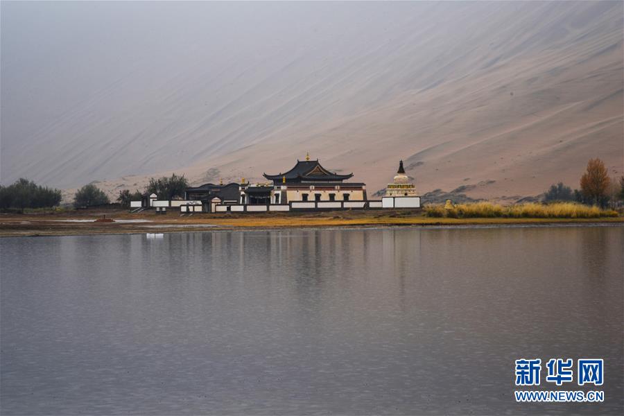 位于沙漠腹地的巴丹吉林廟(10月19日攝)。 巴丹吉林沙漠位于內(nèi)蒙古西部阿拉善盟,是中國第三大沙漠,沙丘起伏的曲線陡變成高聳的沙山,碧藍(lán)的湖泊散落在沙海間。 新華社記者 李仁虎 攝