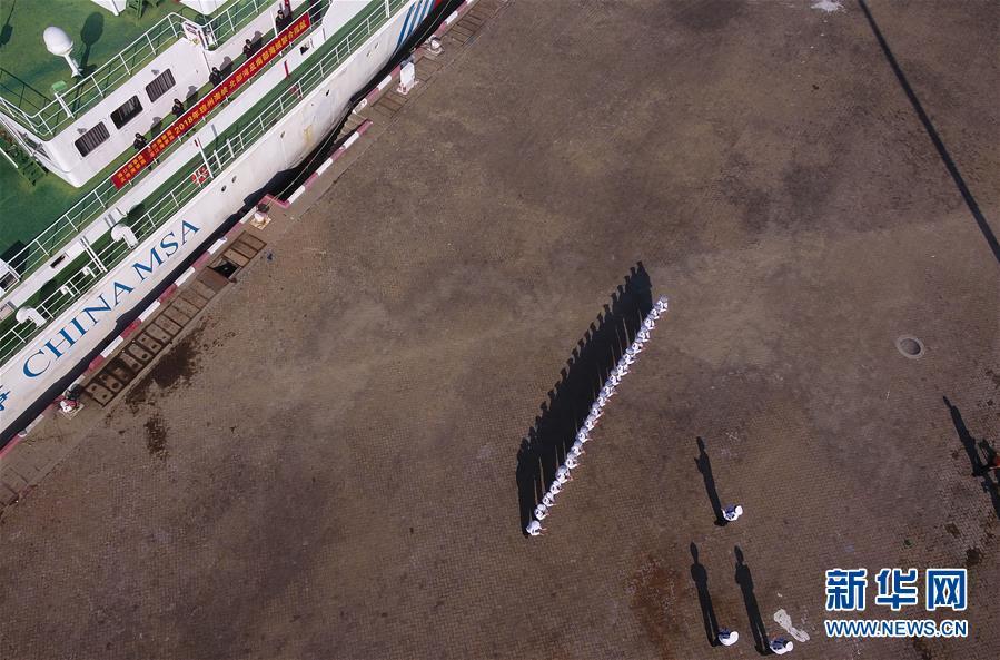 11月3日,海事執(zhí)法人員準(zhǔn)備登上“海巡21”輪(無(wú)人機(jī)拍攝)。 當(dāng)日,隨著“海巡21”輪緩緩駛離海口海事監(jiān)管基地碼頭,由瓊桂粵海事部門共同開展的瓊州海峽、北部灣及環(huán)海南島水域跨轄區(qū)聯(lián)合巡航執(zhí)法活動(dòng)揭開序幕。 新華社記者楊冠宇攝