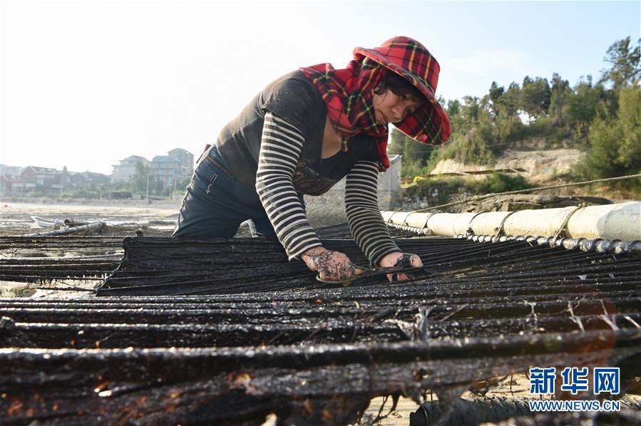 10月24日,福建莆田蔣山村村民在收獲紫菜。