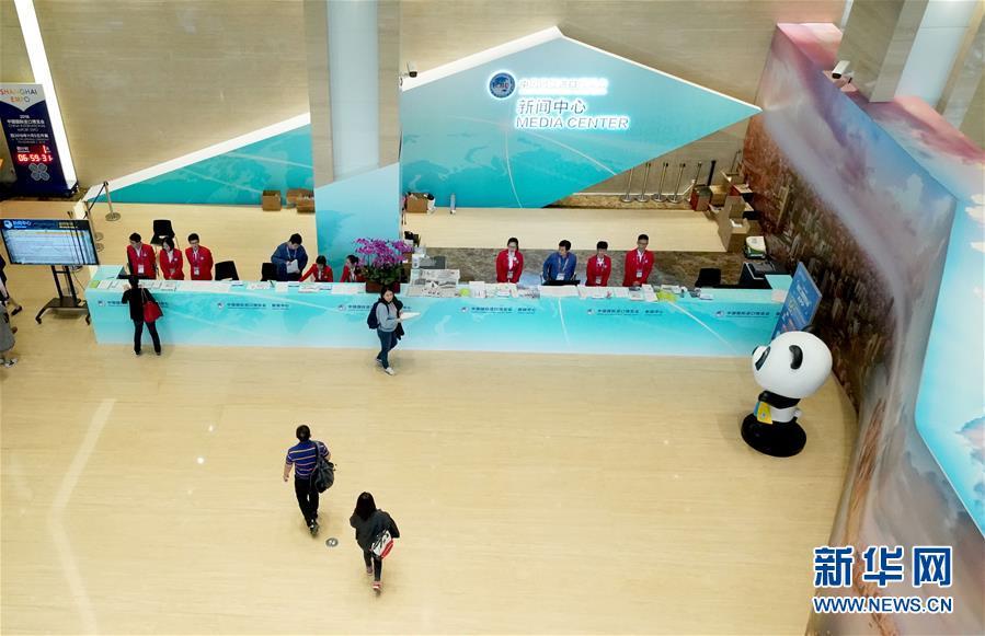 11月4日,媒體記者在首屆中國國際進(jìn)口博覽會新聞中心咨詢臺咨詢。新華社記者陳建力攝