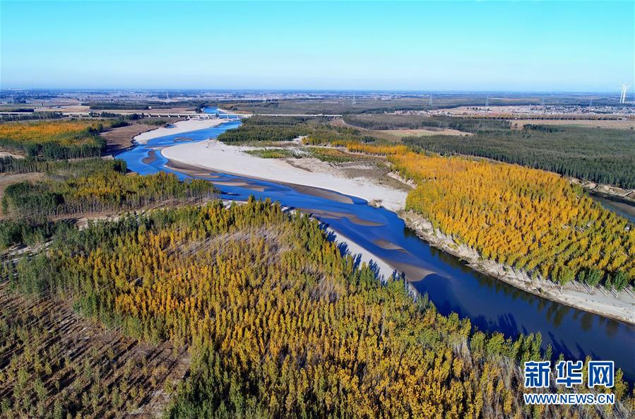 深秋時(shí)節(jié),流經(jīng)河北省樂亭縣的灤河兩岸色彩斑斕,宛如畫境。