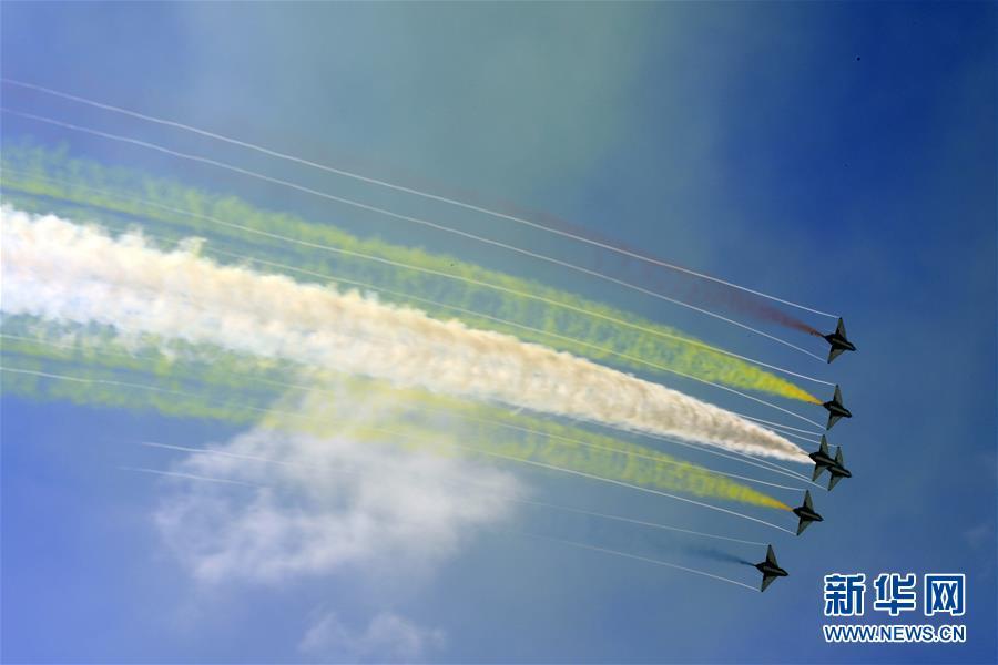 11月6日,中國(guó)空軍八一飛行表演隊(duì)在航展現(xiàn)場(chǎng)進(jìn)行飛行表演。當(dāng)日,第十二屆中國(guó)國(guó)際航空航天博覽會(huì)在珠海開幕。 新華社記者劉芳攝