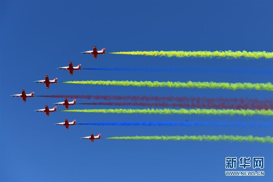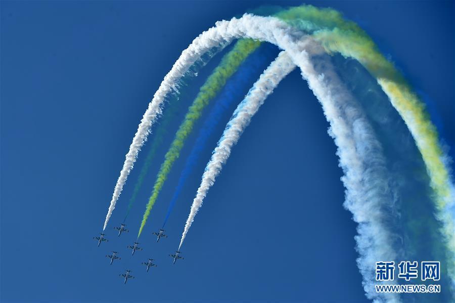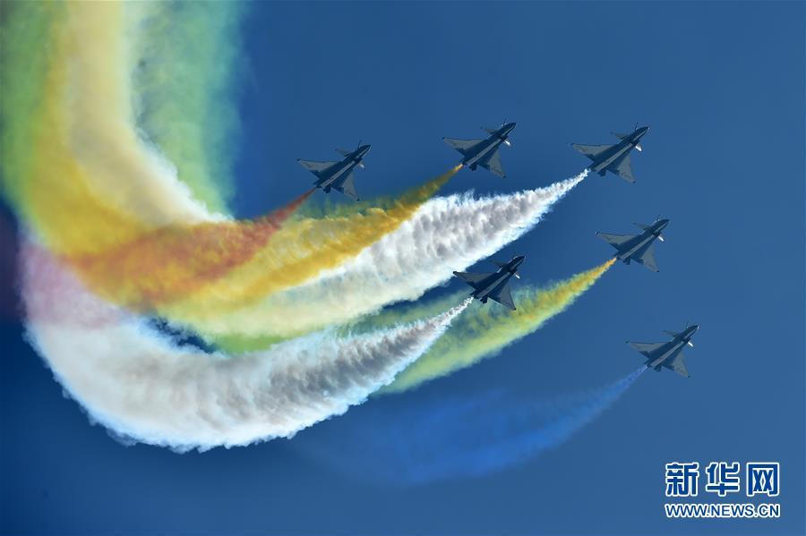 11月6日,中國(guó)空軍八一飛行表演隊(duì)在航展現(xiàn)場(chǎng)進(jìn)行飛行表演。當(dāng)日,第十二屆中國(guó)國(guó)際航空航天博覽會(huì)在珠海開幕。 新華社記者鄧華攝