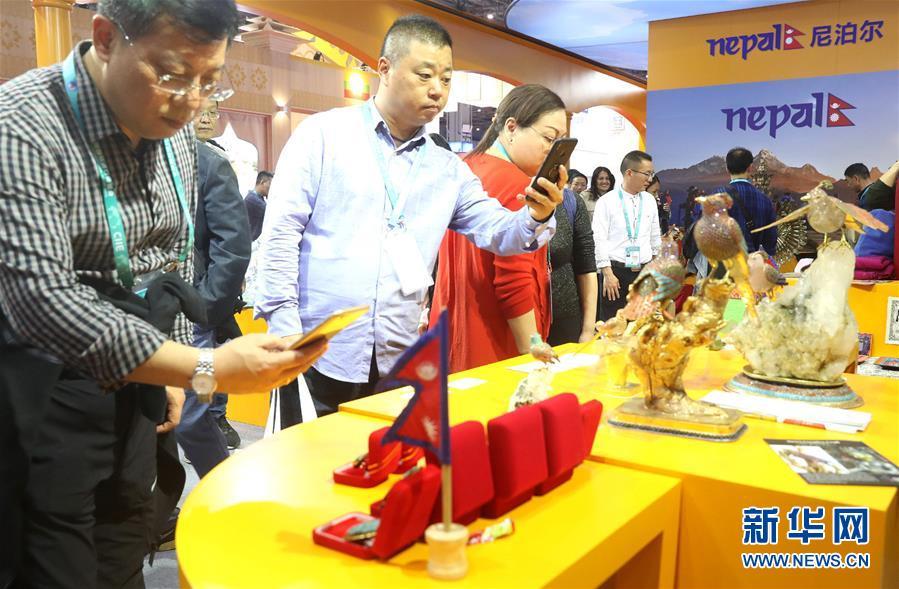 11月7日,人們在尼泊爾展區(qū)參觀。 中國國際進口博覽會11月5日在上海開幕。國家貿(mào)易投資綜合展(國家展)是中國國際進口博覽會的重要內(nèi)容,共有82個國家、3個國際組織設(shè)立71個展臺。 新華社記者 陳飛 攝