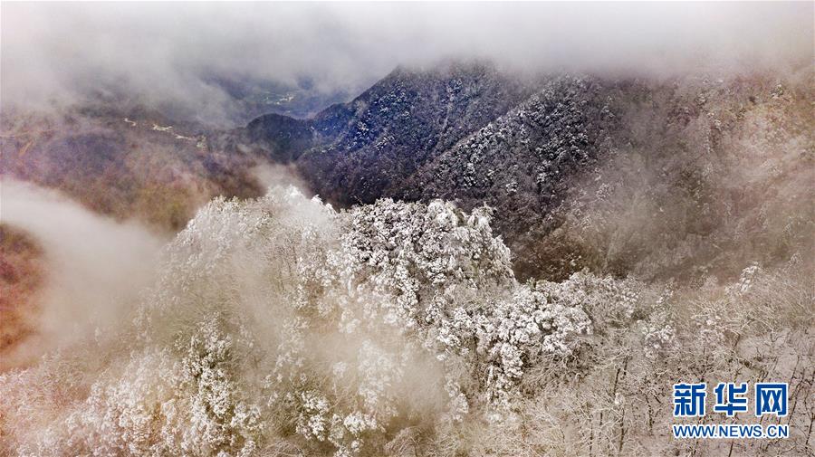 雪后初霽的鬼谷嶺國(guó)家森林公園(11月8日無(wú)人機(jī)拍攝)。 新華社記者陶明攝