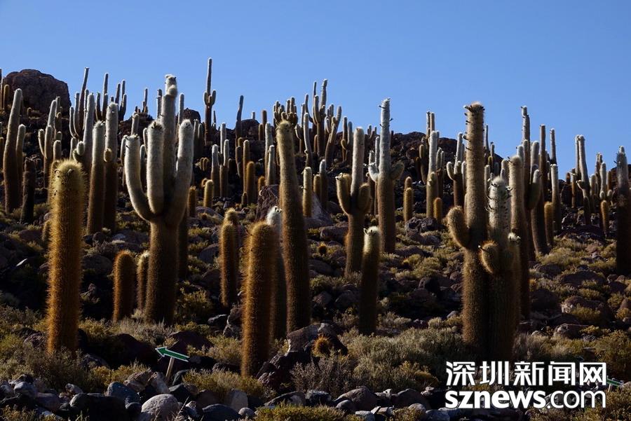 深圳新聞網(wǎng)訊   烏尤尼鹽沼中,有一個孤立的小山頭,猶如瀚海中的小島。島上長滿巨大的仙人柱,據(jù)說有的已經(jīng)生長了上千年。這種形狀各異、耐鹽堿、耐干旱的熱帶植物豐富了鹽沼的風(fēng)光,構(gòu)成絕無僅有的世界奇觀。 李仁奇 攝