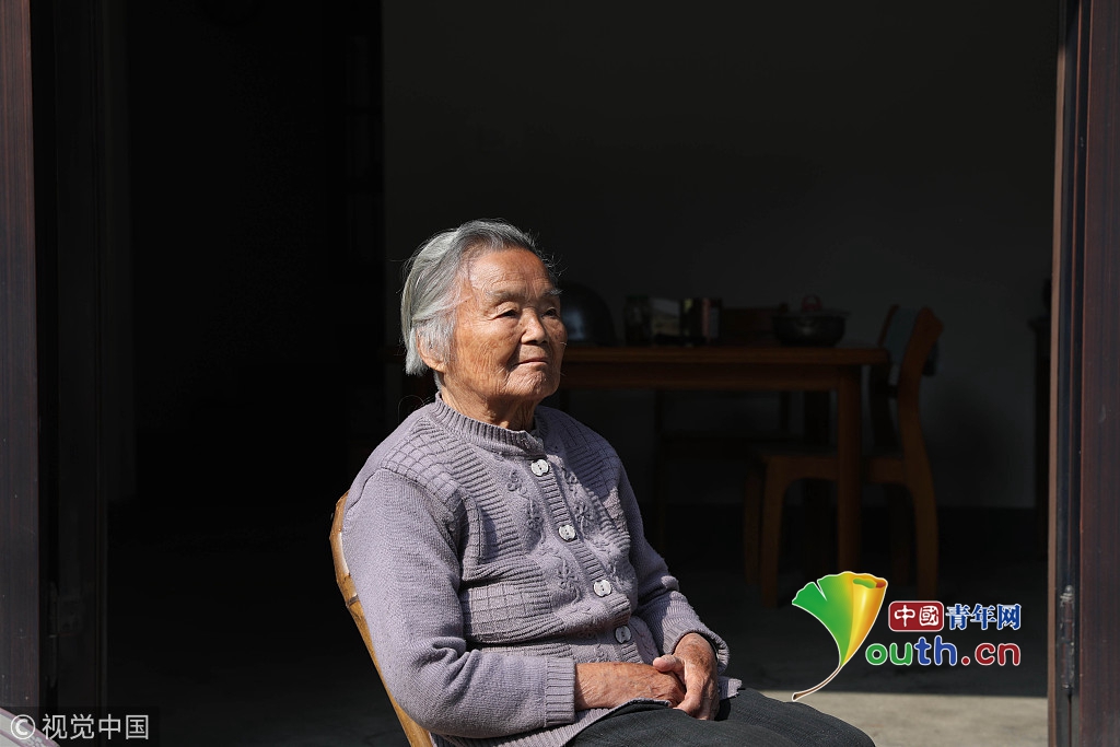 2018年10月31日,杭州,著名作家金庸的妹妹查良琇在浙江臨安家中翻看照片。