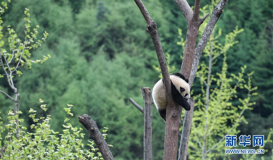 這是在中國(guó)大熊貓保護(hù)研究中心臥龍神樹(shù)坪基地拍攝的大熊貓(2018年4月25日攝)。  新華社記者 薛玉斌 攝