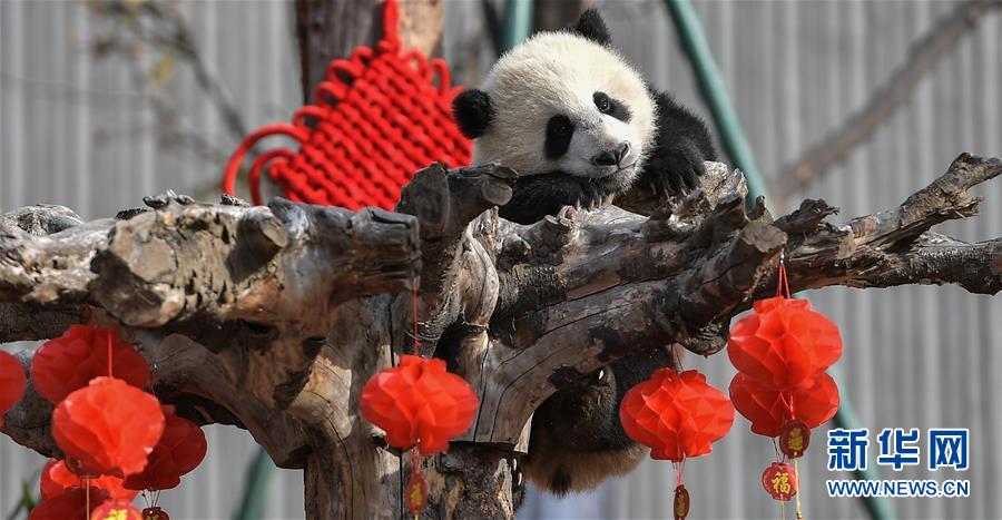 這是在中國(guó)大熊貓保護(hù)研究中心臥龍神樹(shù)坪基地拍攝的大熊貓(2018年2月15日攝)。  新華社記者 薛玉斌 攝