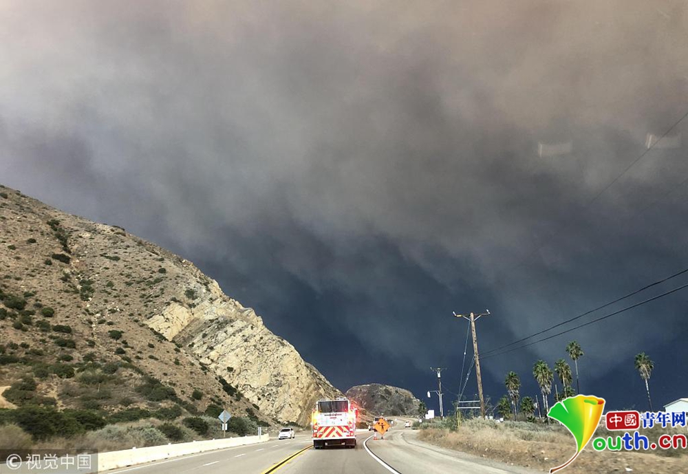 當(dāng)?shù)貢r(shí)間11月9日下午,美國(guó)加利福尼亞州南部文圖拉郡(Ventura County)等地熊熊山火已延燒逾萬(wàn)英畝,濃煙遮天蔽日。