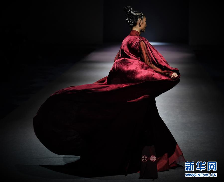 模特在AJ-NAMO藏裝秀上展示藏族設計師阿佳娜姆設計的時裝(11月18日攝)。 新華社記者 普布扎西攝