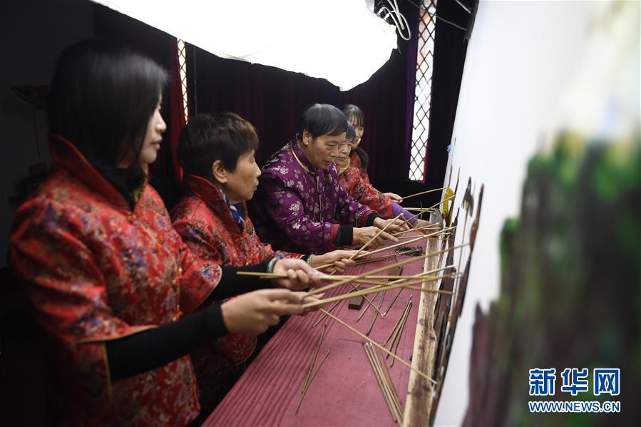 制作一個花束,最快也要15分鐘,復雜的需要半個小時甚至更長時間。圖為王黎媛和同事在制作花束。新華網(wǎng) 周亞平/攝念新洪/文
