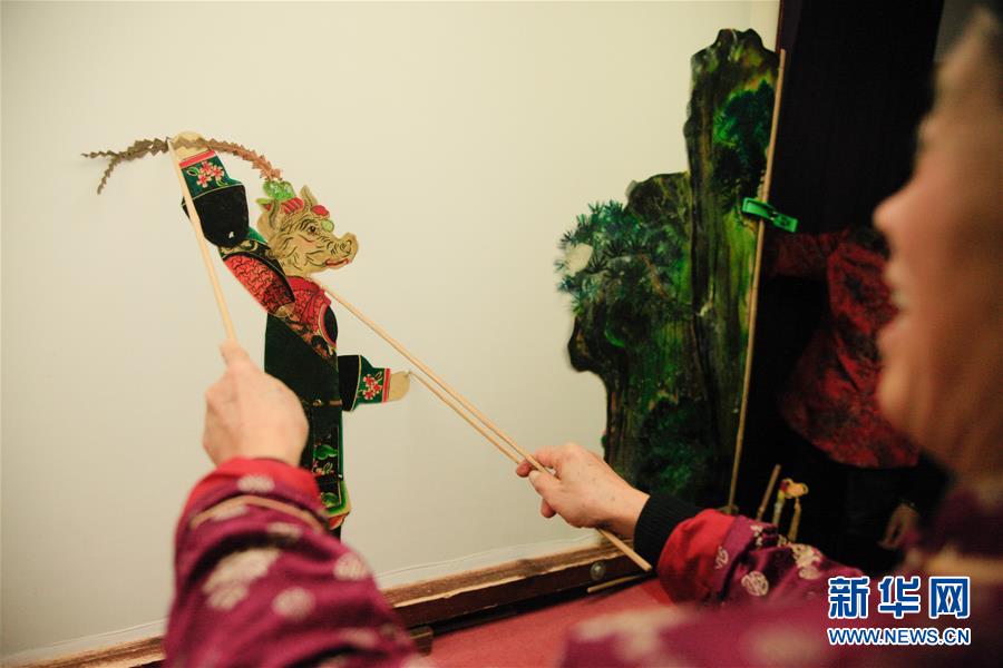 11月20日,在浙江海寧市南關廂歷史街區(qū),張坤榮在表演皮影戲。新華社記者朱唯希攝