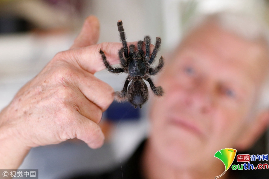 碩大的蜘蛛在手上看起來(lái)很乖巧。