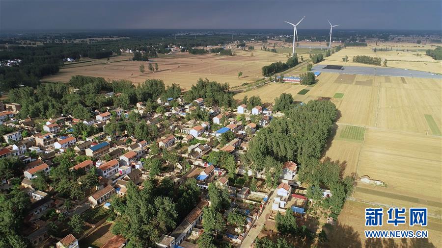 這是6月20日無人機拍攝的河南蘭考縣東壩頭鄉(xiāng)張莊村周圍的麥田和風(fēng)機。新華社記者馮大鵬攝
