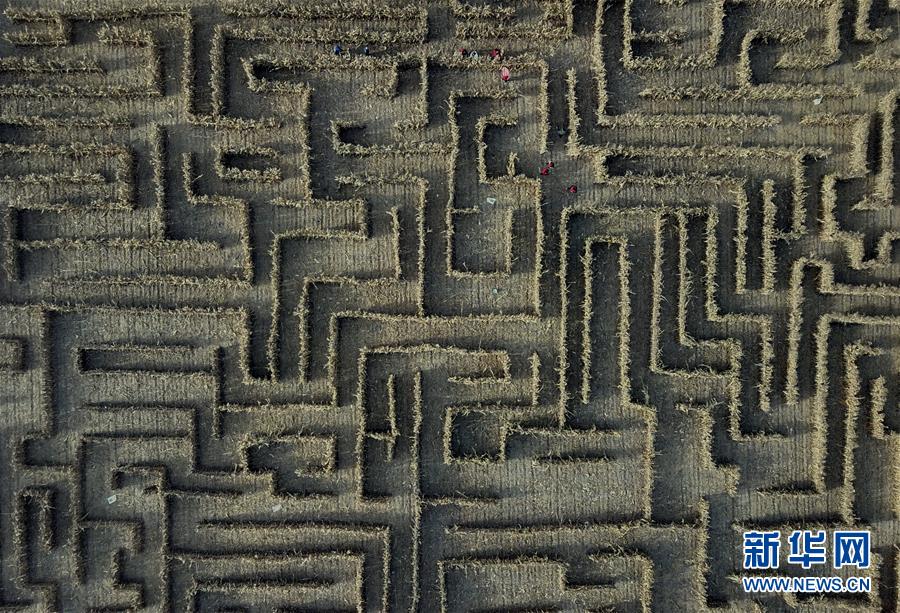 近日,一座占地10畝、用玉米秸稈搭建的迷宮亮相河北省昌黎縣劉臺(tái)莊鎮(zhèn)白棗林村收完莊稼的田間,吸引游客前來(lái)體驗(yàn)。