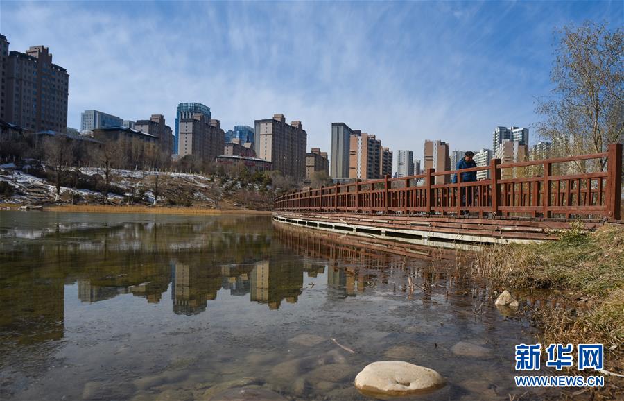 11月28日,一名市民在西寧市海湖新區(qū)的公園內(nèi)行走。  新華社記者 吳剛 攝