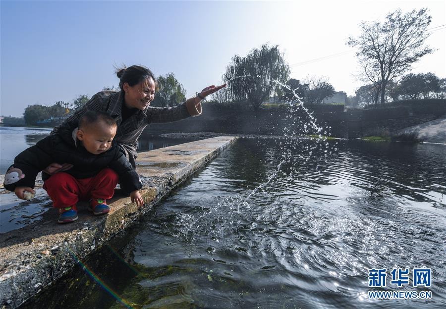 11月28日,月明村的村民在長豐澗溪水邊嬉水。近年來通過實施河長制和水環(huán)境整治,長興縣夾浦鎮(zhèn)月明村對長豐澗進(jìn)行了清淤,對河兩岸綠化進(jìn)行了補(bǔ)植,修筑堰壩、蓄水引魚,兩岸種植花草,開辟河灘公園,實現(xiàn)了長豐澗景美、岸綠、水清、河暢的目標(biāo)。 新華社記者 徐昱 攝