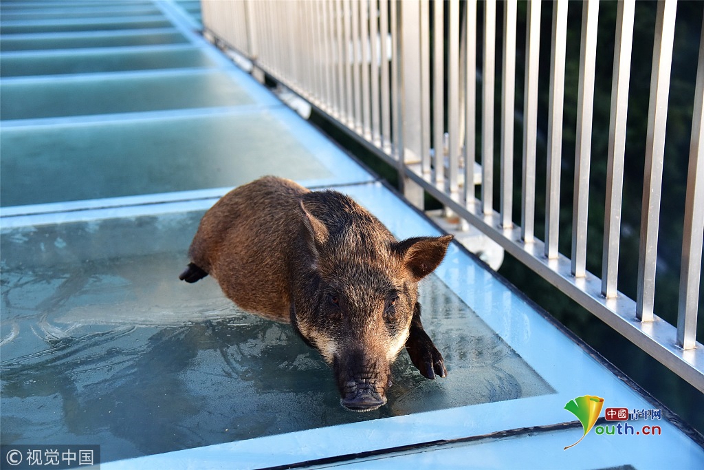 小野豬誤入玻璃橋嚇得發(fā)抖保安解救 豬:你們?nèi)祟?lèi)太可怕了
