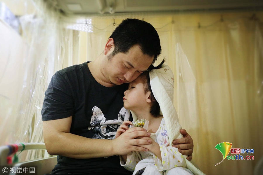 有人說,每個大病患兒都是折翼的天使。經(jīng)過兩年多的治療后,小婭馨變得越來越堅強懂事了,對自己的病情也有了基本清晰的認(rèn)知。11月16日,小婭馨接受化療時靜脈上被插上了長長的管子,疼的嚎啕大哭,爸爸袁東方摟著她痛哭流涕:“女兒不怕!打完針病就好了,你就能像正常人一樣上學(xué)、戀愛、結(jié)婚了!”。治療結(jié)束后,小婭馨天真無邪地說“爸爸,長大了才可以結(jié)婚,那需要好久,我害怕等不到那一天,要不現(xiàn)在咱們倆結(jié)一次婚吧!”。
