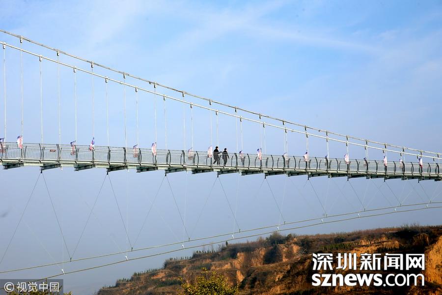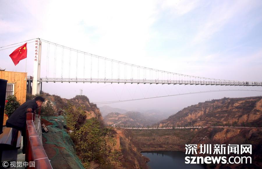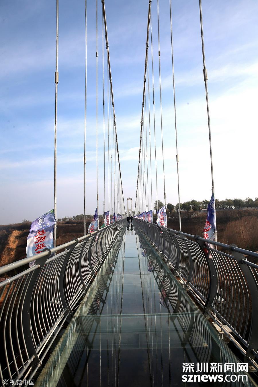 深圳新聞網(wǎng)訊 河南三門峽,位于陜州地坑院景區(qū)玻璃天橋。該項(xiàng)目橋梁總投資2600萬元,全長368米,寬3米,高108米,是目前河南省內(nèi)最長的玻璃天橋,還將陸續(xù)對(duì)外開放夜景效果、聲光效果以及更多的體驗(yàn)效果,逐步打造成整個(gè)豫西地區(qū)乃至全省的旅游打卡新地標(biāo)。