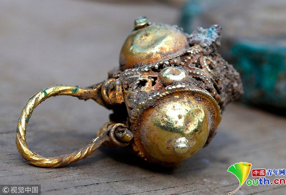 這是發(fā)掘的隨葬品(11月15日攝)。