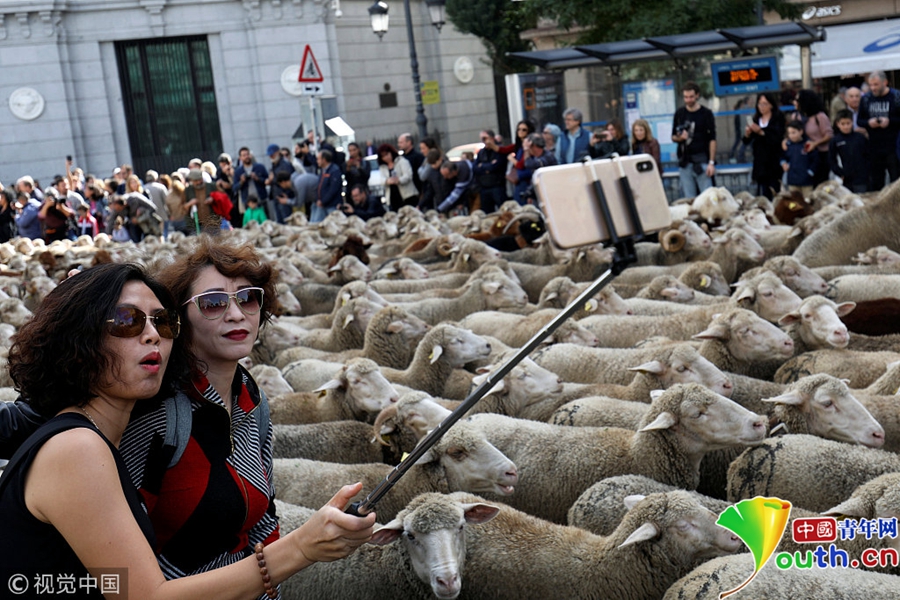 市民與羊群合影。