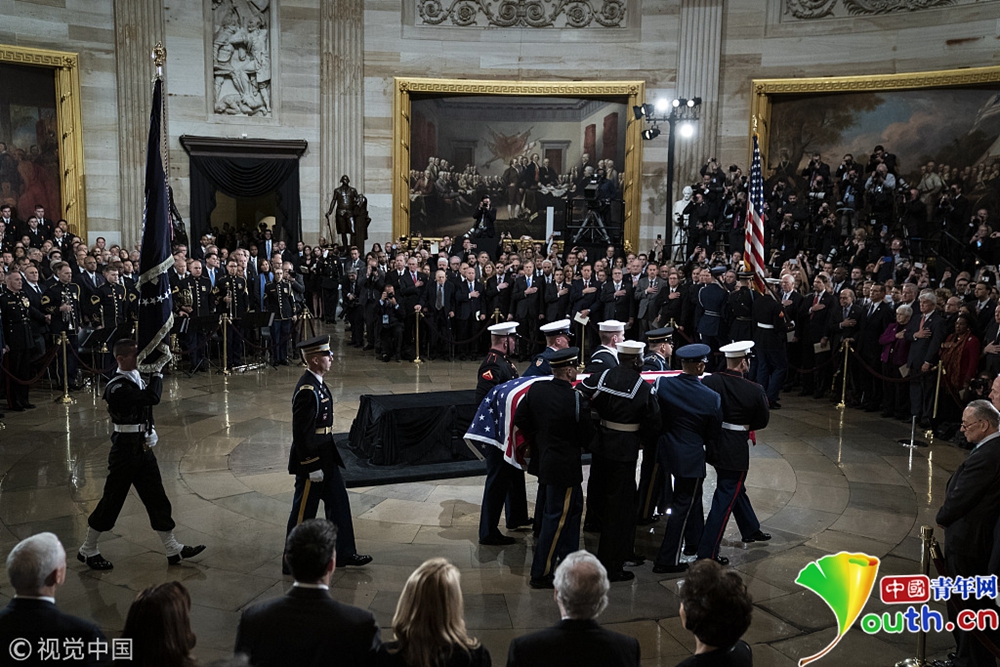 當(dāng)?shù)貢r間2018年12月3日,美國前總統(tǒng)老布什的靈柩送抵美國國會大廈,正式的追悼儀式就此開始。