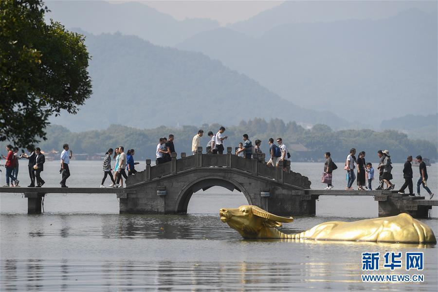 10月7日,杭州西湖風(fēng)景區(qū)的斷橋上游人絡(luò)繹不絕。為維持秩序,景區(qū)采取了雙向游客互相隔離的措施。當(dāng)日是國慶黃金周最后一天,眾多游客來到杭州西湖景區(qū)觀光游覽,熱度不減。據(jù)杭州市旅游委員會公布的數(shù)據(jù)顯示,從10月1日起截至10月7日12時,國慶七天杭州市各景區(qū)(點)接待游客總量達(dá)到1776.14萬人次,其中西湖風(fēng)景名勝區(qū)管委會所屬公園景點共接待游客452.2萬人次。新華社記者 黃宗治 攝