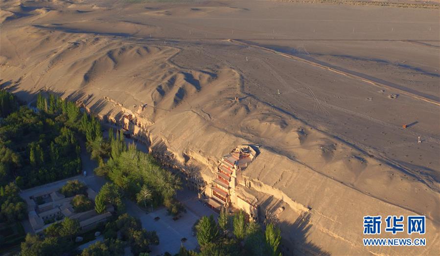 這是世界文化遺產(chǎn)莫高窟(2016年9月7日無(wú)人機(jī)拍攝)。 敦煌記錄歷史。開(kāi)放的胸襟,曾讓這里成為古代絲綢之路上“華戎所交一都會(huì)”。 時(shí)隔千年,改革開(kāi)放的春風(fēng)吹入西北內(nèi)陸小城,敦煌再度成為中國(guó)對(duì)外開(kāi)放的文化前沿。 新華社記者 陳斌 攝