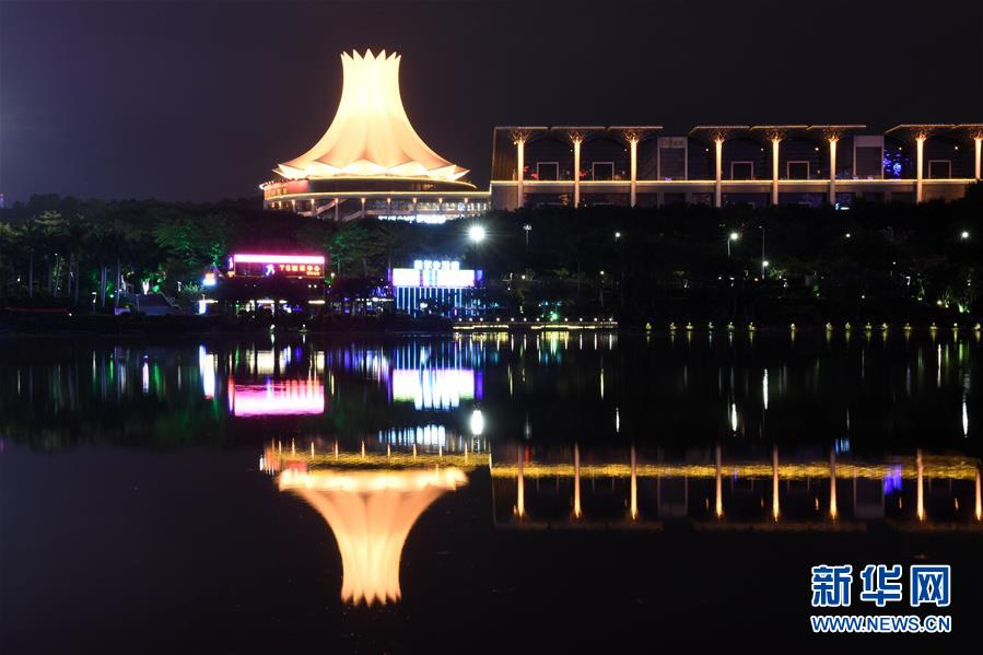 廣西南寧國(guó)際會(huì)展中心倒映在水面(12月10日攝)。  新華社記者 陸波岸 攝