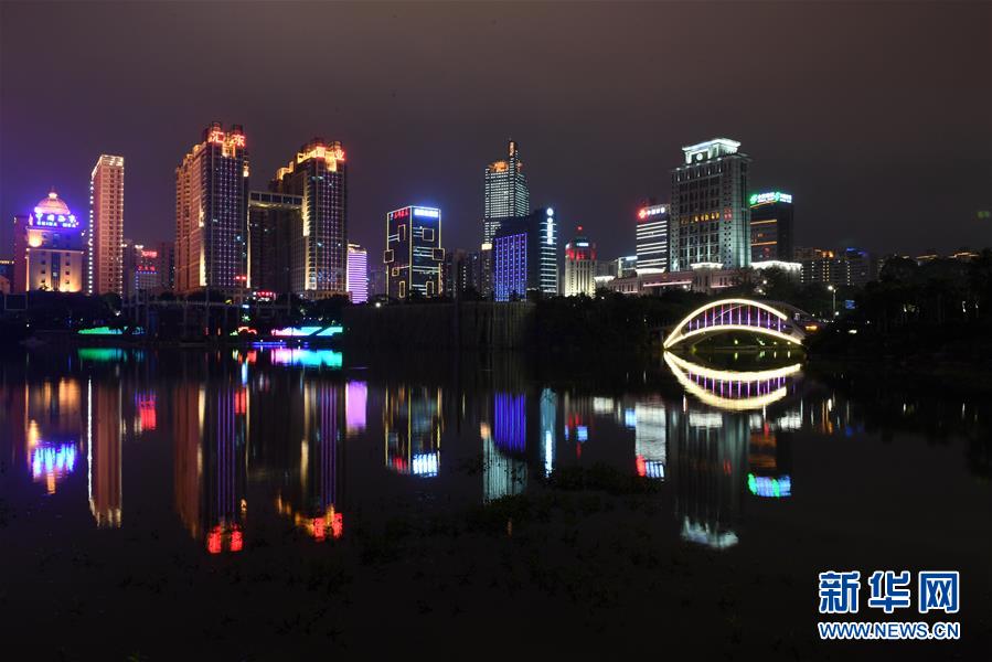 夜幕下的廣西南寧市一景(12月4日無(wú)人機(jī)拍攝)。  新華社記者 黃孝邦 攝