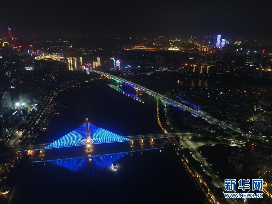 夜幕下的廣西南寧市一景(11月29日無(wú)人機(jī)拍攝)。 新華社記者 周華 攝