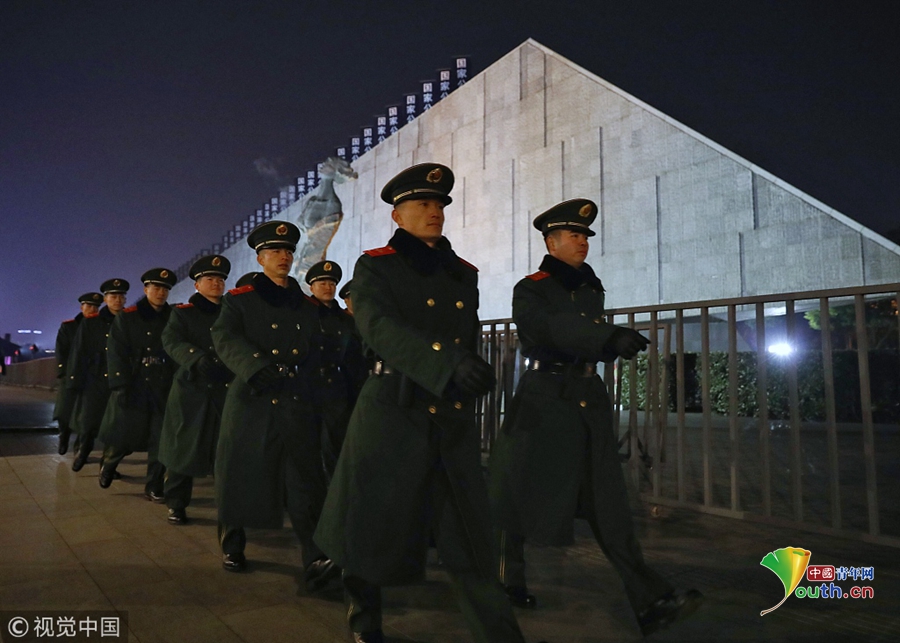 2018年12月12日晚,江蘇南京,侵華日軍南京大屠殺遇難同胞紀(jì)念館沿線道路莊嚴(yán)肅穆、安保和工作人員做好了準(zhǔn)備,迎接第五個(gè)南京大屠殺死難者國家公祭日。2018年是南京大屠殺慘案發(fā)生81周年,第五個(gè)南京大屠殺死難者國家公祭儀式將于12月13日舉行。圖片作者:尼克