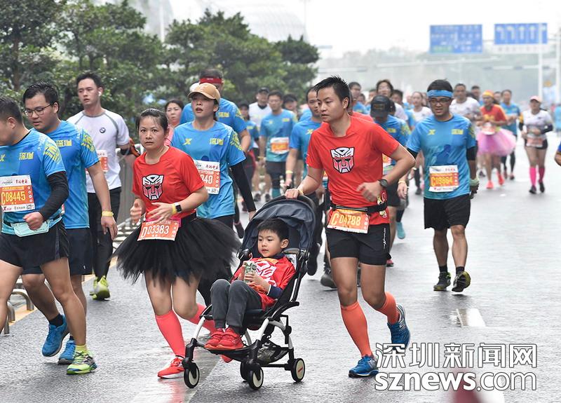 2018年12月16日,深圳國際馬拉松位于后海的折返點,一家三口都參與了本次比賽,正向目標(biāo)沖刺。
