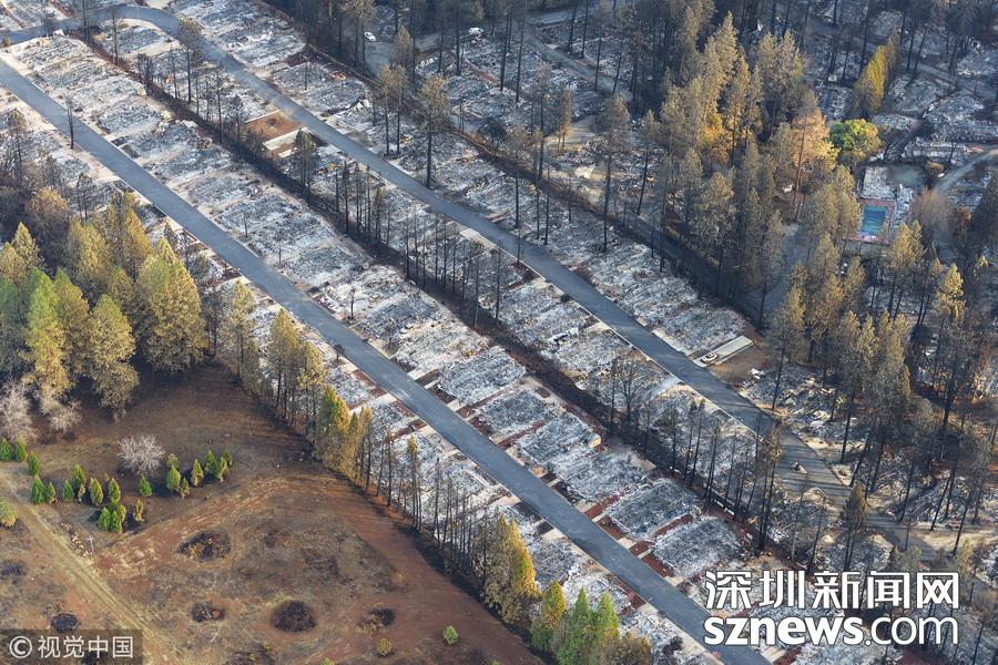 天堂變“地獄” 航拍加州山火肆虐社區(qū)似墓地