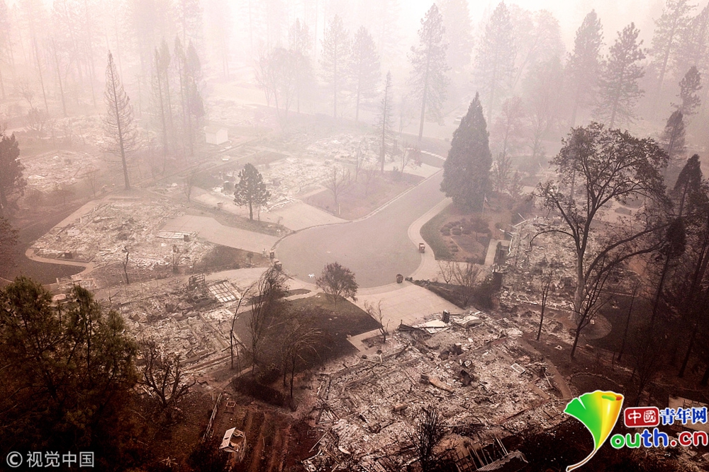 “坎普”山火使加州天堂變“地獄” 已致88人死亡近2萬座建筑被毀