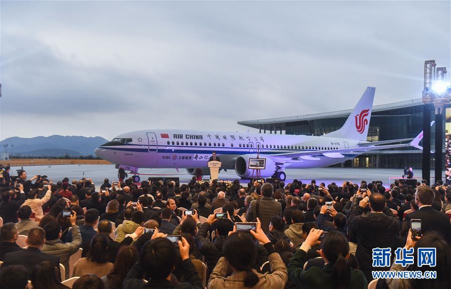 這是交付儀式現(xiàn)場的波音飛機(12月15日攝)。 新華社記者 徐昱攝