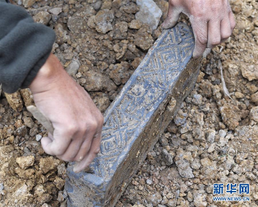 這是發(fā)掘的隨葬“搖錢樹”底座(11月15日攝)。
