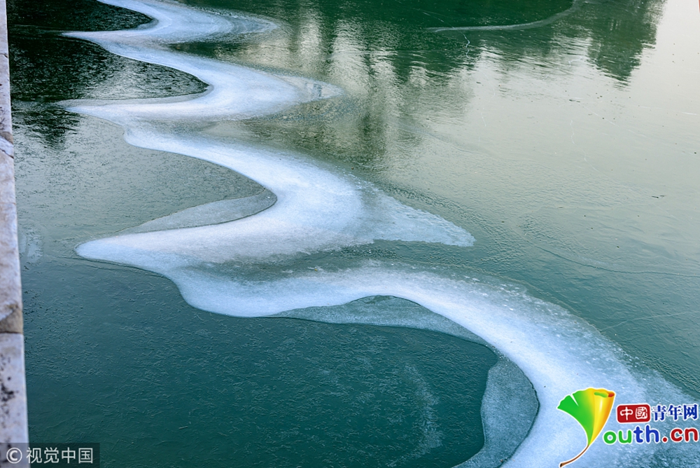 昆明湖水面結冰。