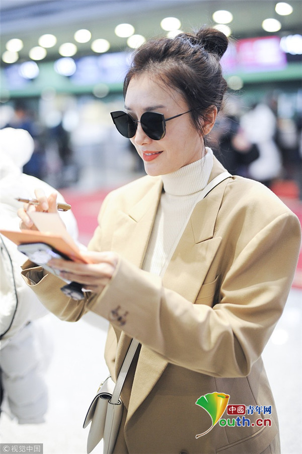 2018年12月11日,上海,秦嵐現(xiàn)身機(jī)場。她穿淺西裝配高領(lǐng)毛衣溫暖又時(shí)尚,梳丸子頭清新減齡,機(jī)場獲粉絲送告白信,嬌羞嘟嘴賣萌少女范十足。