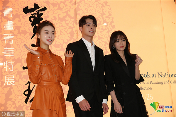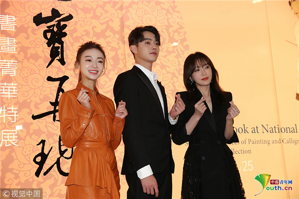10月31日,臺(tái)北,《延禧攻略》主要演員秦嵐、吳謹(jǐn)言、許凱參觀臺(tái)北故宮。吳謹(jǐn)言梳高馬尾辮,元?dú)鉂M滿比心超甜美。秦嵐穿黑色長裙氣質(zhì)非凡,親切揮手顯優(yōu)雅,可以說是“富察皇后”本人了,與吳謹(jǐn)言牽手秀友誼惹人羨慕。