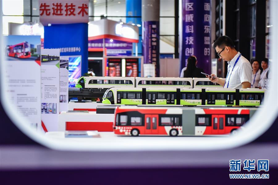 在廣西南寧國際會(huì)展中心展出的中車集團(tuán)的新型公共交通車輛模型(9月13日攝)。