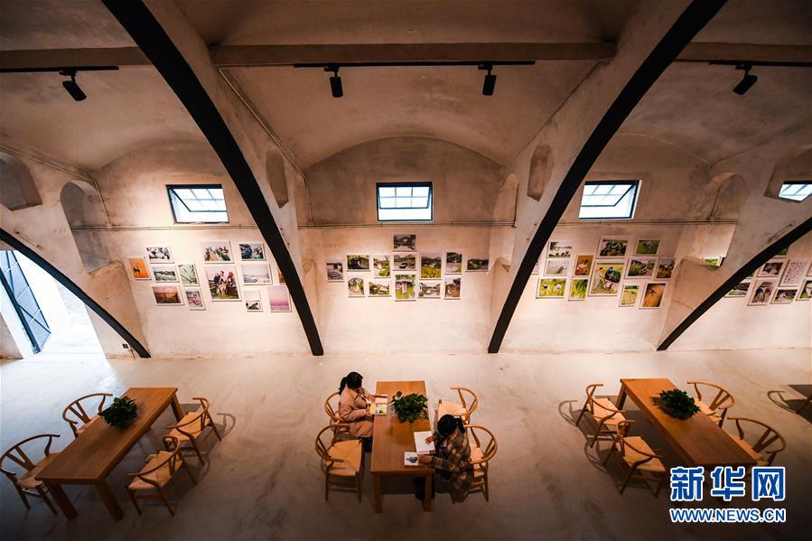 12月20日,村民在舊糧倉(cāng)改建的“漾西書(shū)吧”內(nèi)看書(shū)。